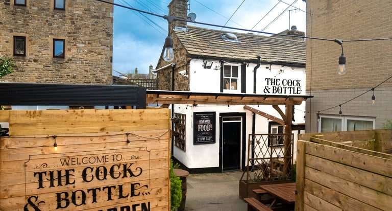 In 1906, a local historian of Skipton, W.H. Dawson, wrote, “The Cock & Bottle Inn, a wayside inn of long ago in Swadford Street, is the only building in that street to have retained anything of its old originality”. He goes on to relate that... ”About fifty years ago, The Cock & Bottle belonged to a Mr. Smith. This gentleman made his will on a pewter pot, why and wherefore one can only conjecture. The pot was afterwards stolen, not, it is believed, by anyone who noticed the peculiar use made of it, but for the value of the pewter. This pot was traced as far as Leeds but no further clue could be found and, on Mr. Smith’s death, his possessions passed to his heir-in-law.”